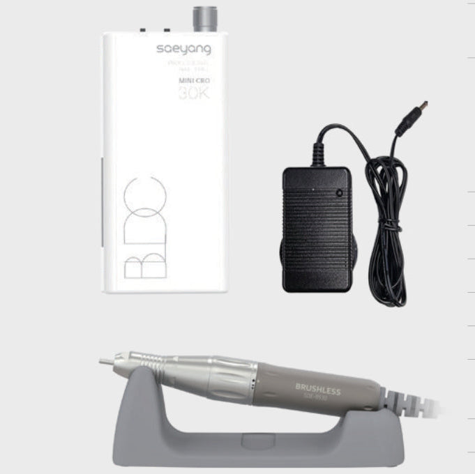 The Saeyang MINI cro is a professional, portable nail drill (control box & micromotor) specifically designed for professional use. The device combines a compact design with powerful performance for precise treatments.