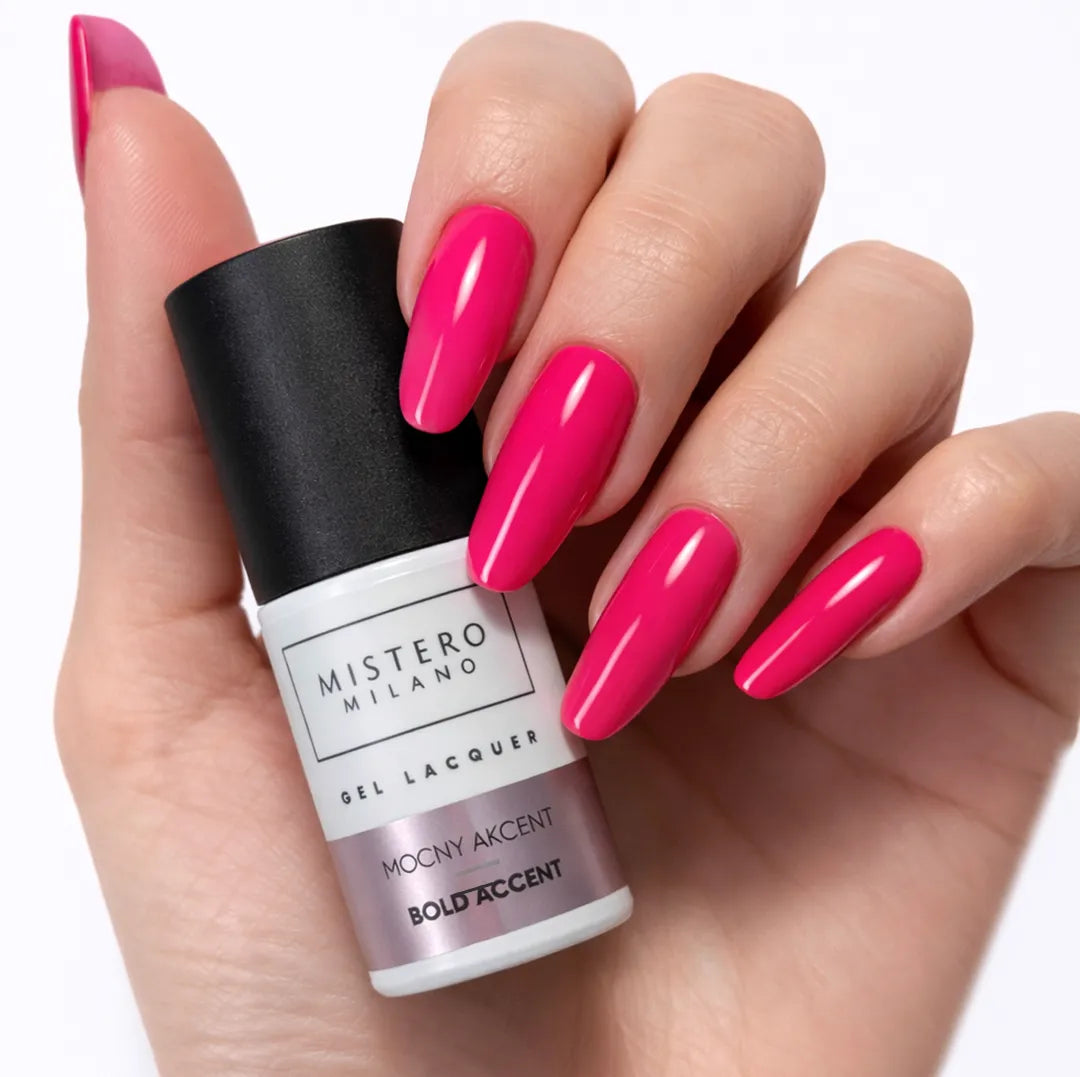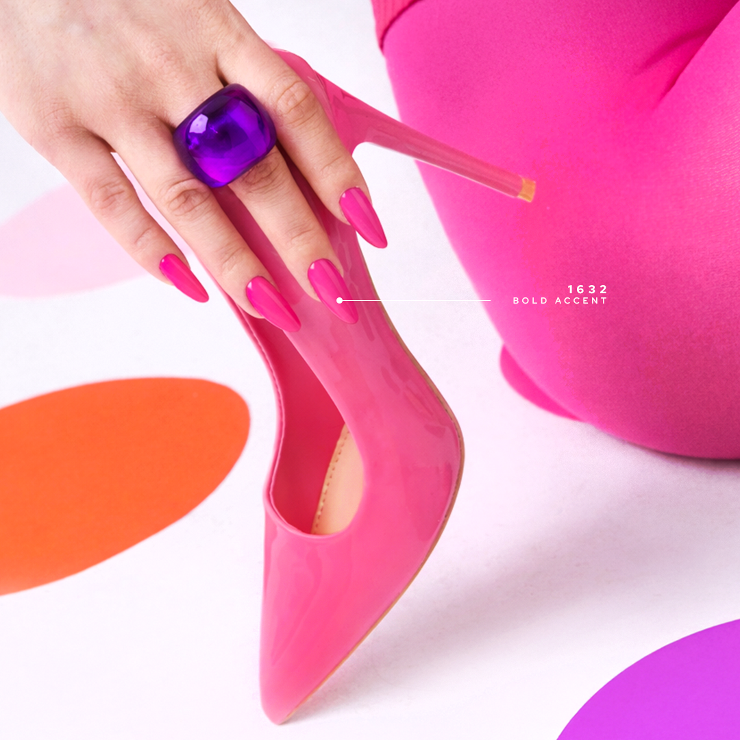 Bold accent est un rose néon intense et froid qui capte immédiatement le regard. Pur et saturé – il a été spécialement conçu pour les profils colorimétriques qui se révèlent à travers des contrastes forts, en particulier la typologie hivernale. Cette couleur accentue magnifiquement les sous-tons froids de la peau, apporte une touche de fraîcheur et transforme la manucure en un véritable manifeste, à la fois puissant et harmonieux.